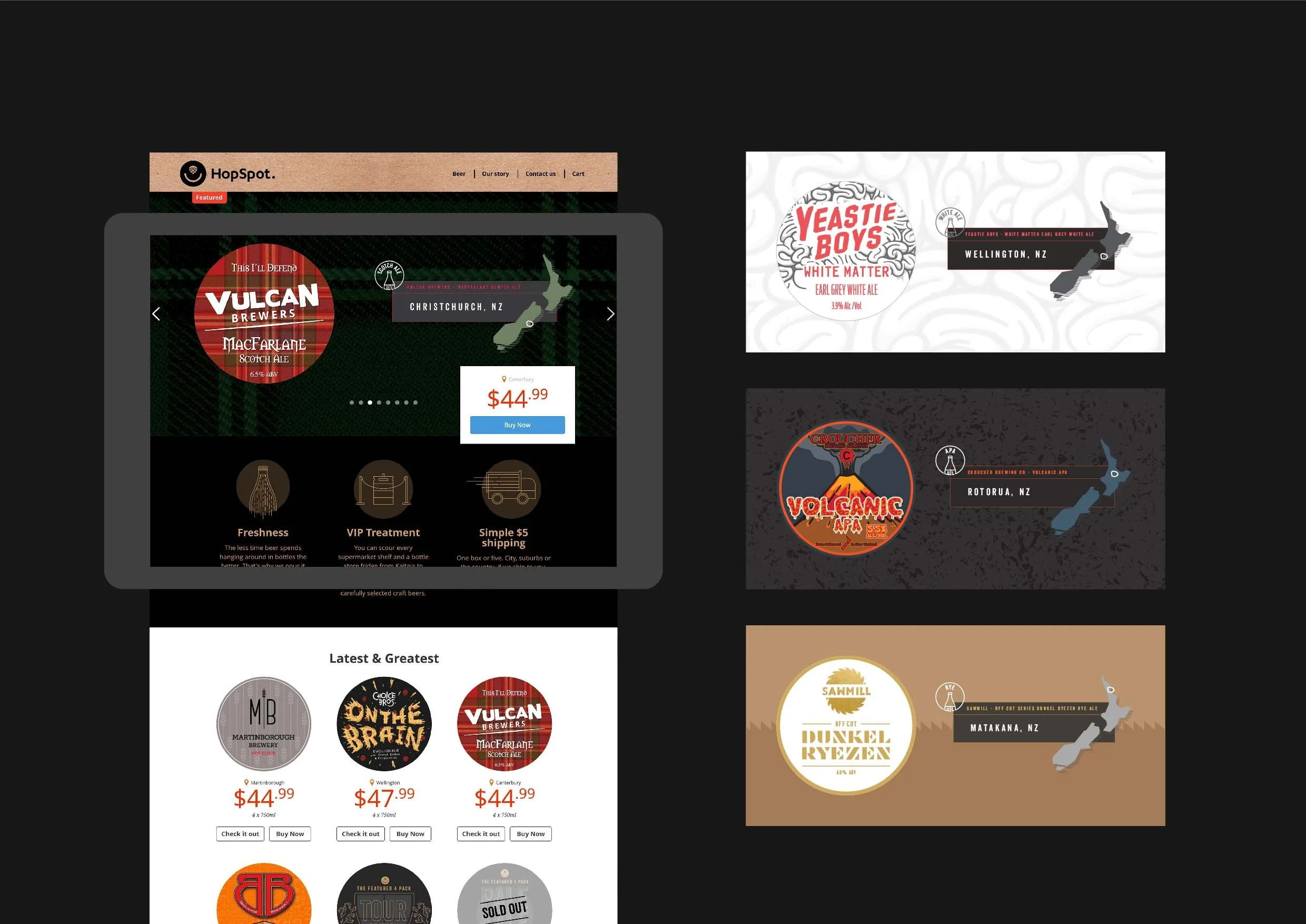 Client and craft beer lover Joe started HopSpot after seeing the array of Kiwi breweries producing small batch beers that were only kegged and seldom saw the light of day outside a few localized pubs. He set himself up with all the right bottling tools, and started making these rarer, small batch varieties accessible to everyone online.